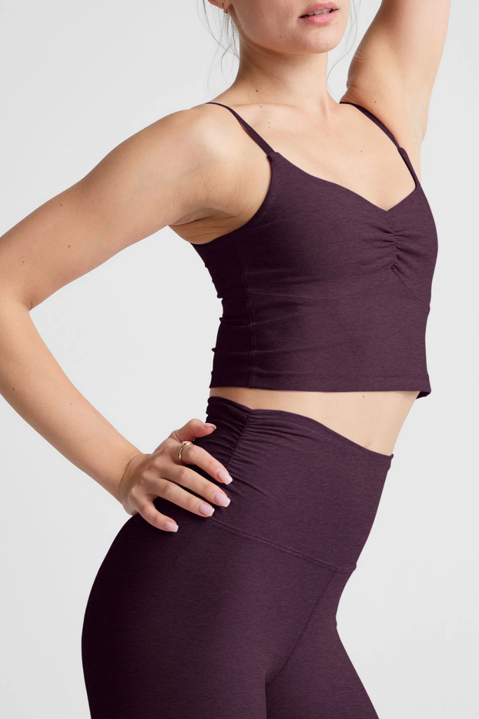 Spacedye Raise the Barre Shirred Cropped Tank - Eggplant Purple Heather