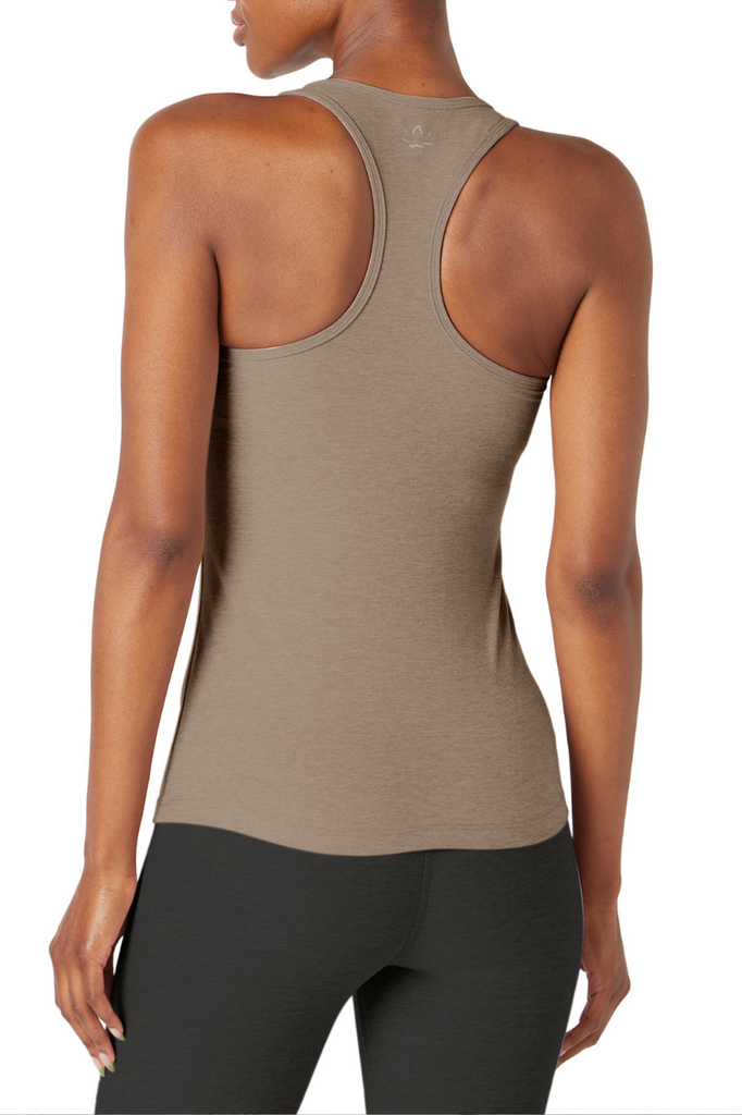 Beyond Yoga’s supportive racerback tank in their signature spacedye fabric will be able to travel with you from morning til night! Featuring a self shelf bra and a high hip length.
