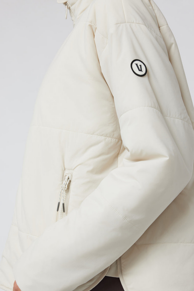 The Canyon Insulated Jacket by Vuori features a zippered front closure, side zip pockets, water resistant fabric, and a relaxed silhouette. Perfect for the cooler months!
