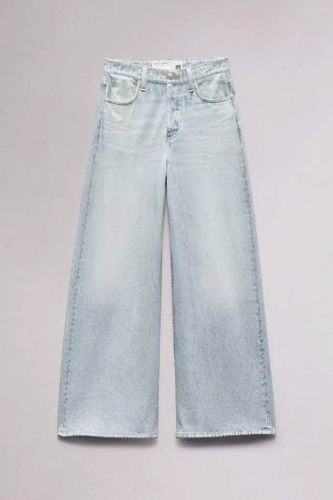 1 reviewThanks to Rag & Bone's cutting edge printing technology, these pants are made to look like denim but are actually 100% terry cotton. Their features include: high-rise style, wide leg, hem that hits at the ankle. Yes, please!