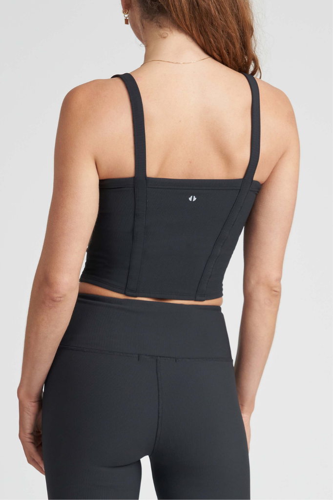 A Thrive Societe staple! This tank features a shelf bra and removable cups, medium support, and a has a sliming design.