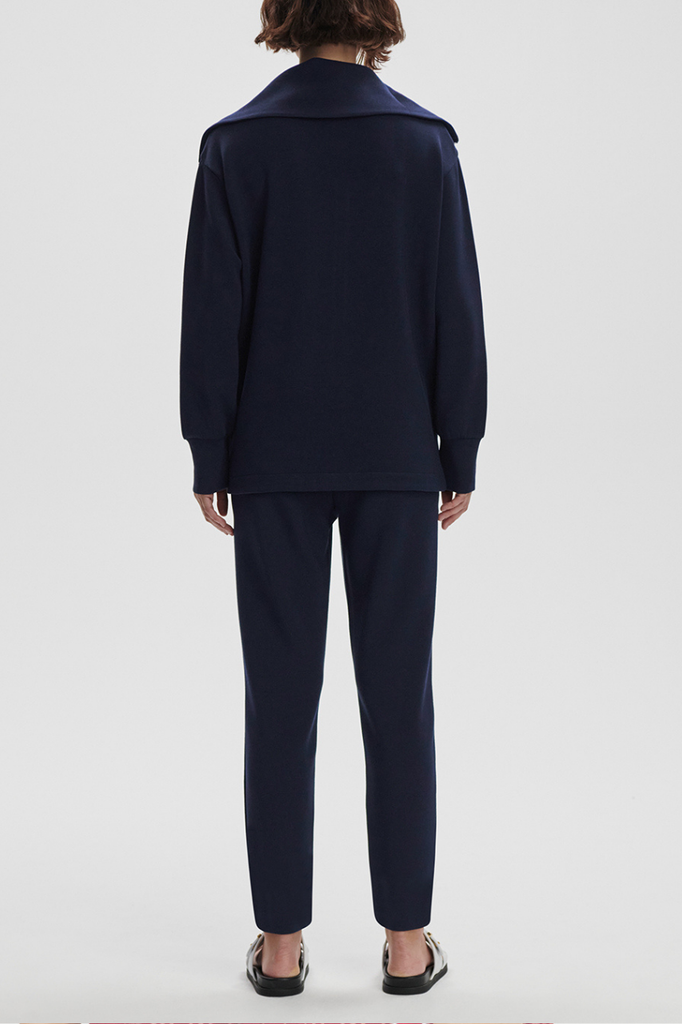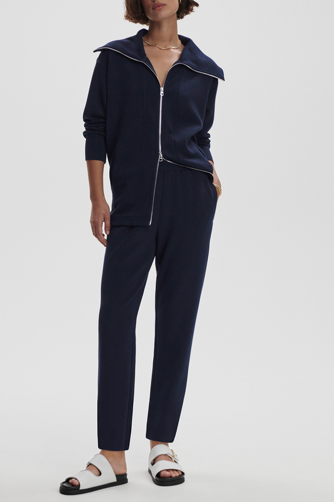 A long sleeve mid layer sweater by Varley featuring a silver zipper front and collapsable collar. Pair with leggings, jeans, shorts, or pants!