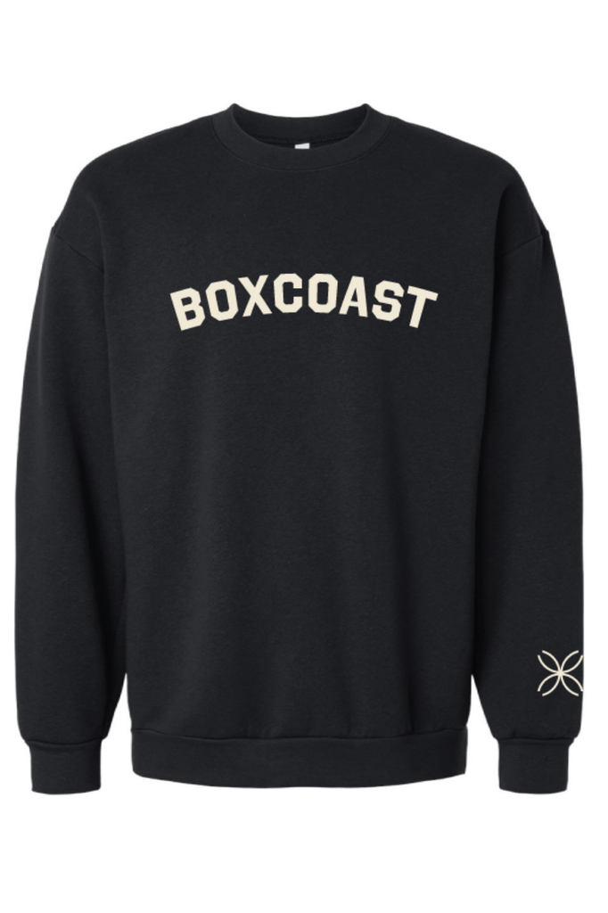 Front graphic of "BOXCOAST" and our logo on the sleeve.