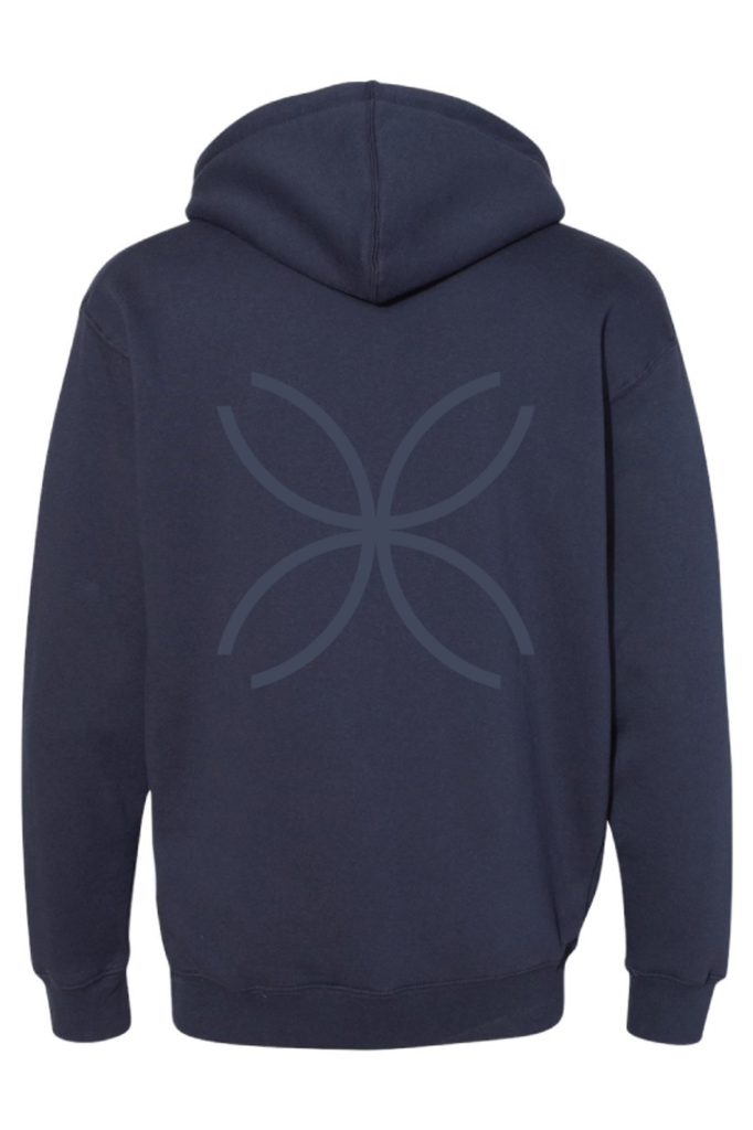 This hooded sweatshirt features a front BOXCOAST graphic and back logo graphic.
