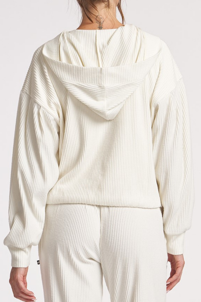 This brushed ribbed pullover by Thrive Societe features a v-neck front and hoodie. Pair it with their Brushed Rib Bungee Jogger for a matching set!