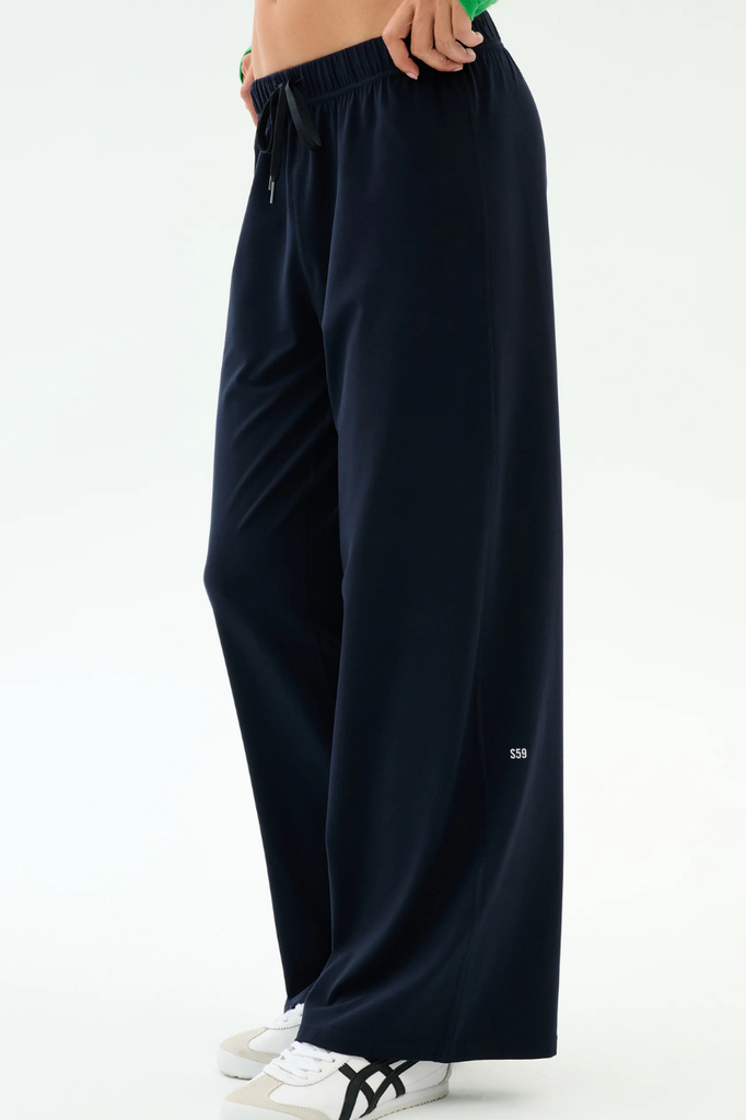 A flared elevated lounge pant by Splits59 featuring a functional drawstring waistband and buttering fabric that you will melt over!