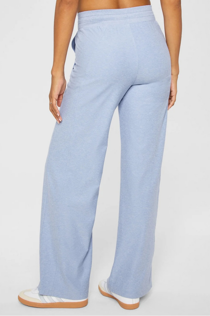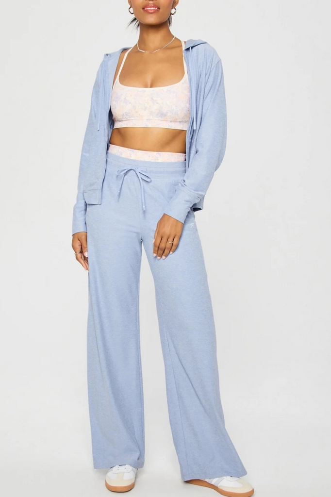 A loungewear bottom by Fabletics that can be dressed up or down--perfect for a date night in or for running errands around town. Featuring a functional drawstring waistband, side slit pockets, and a wide leg taper. Pari with the Cloud Jersey Full Zip Hoodie for a matching set.