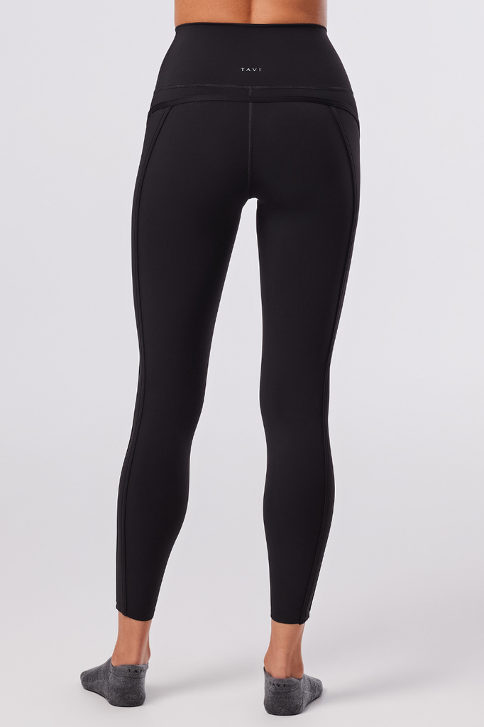 High waist provides all around support and a smooth finish! These Tavi Noir leggings feature a 7/8th hem for a flattering, lengthening fit and slimming seam details all over. Pair with the Mock Neck Long Sleeve top for a matching set!