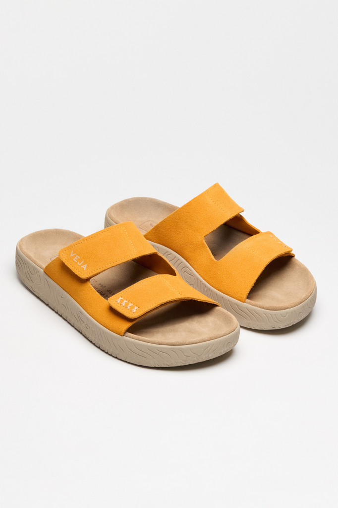 Featuring an open toed design, velcro straps for the perfect fit, a supportive sole, and of course, sustainable rubber.