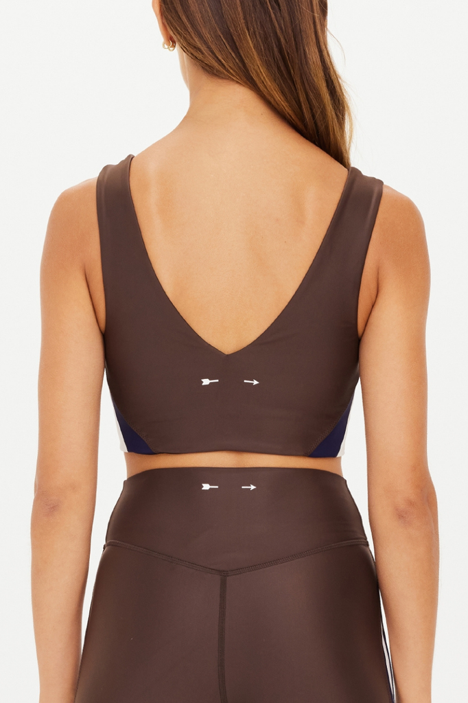 A sports bra by The Upside featuring a deep V front and back detail, thicker supportive straps, and removable cups. Pair this top with the Icon 28in High Rise Pant for a matching set!