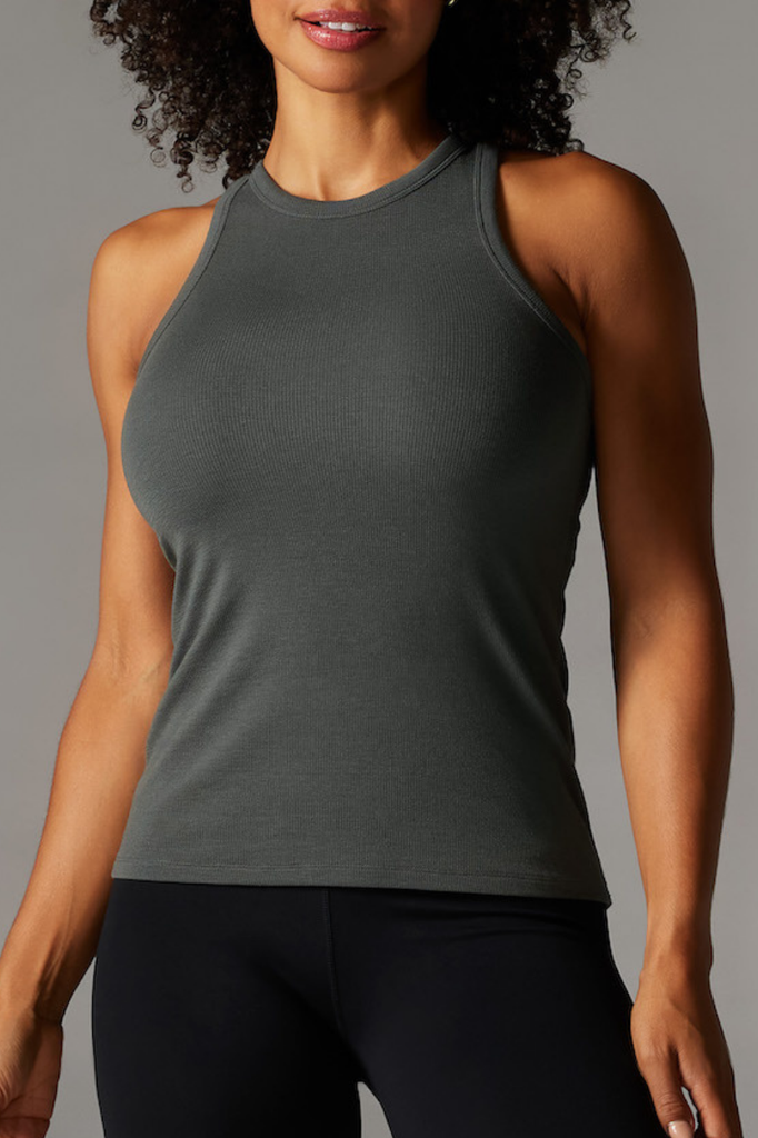 Designed to keep it's shape and stay in place, The Perfect Rib Tank by Tavi Noir is the piece you've been searching for! Racerback detail, high crew neckline, and a perfect length that hits just below the waist makes this top a favorite already!