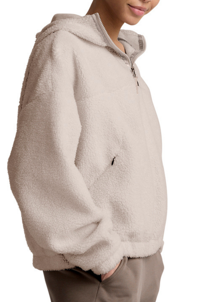 A cozy hoodie by Beyond Yoga featuring a 1/4 zip front, zipper front pockets, and a classic hem length hitting right above the hip. We love this one!